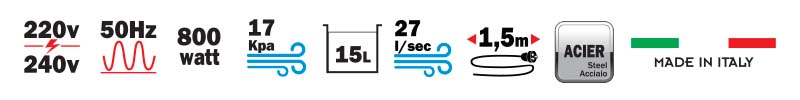 Sähköinen tuhkapölynimuri Cenetì 15 L / 800 W (Ribimex, Italia)